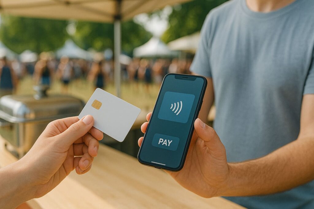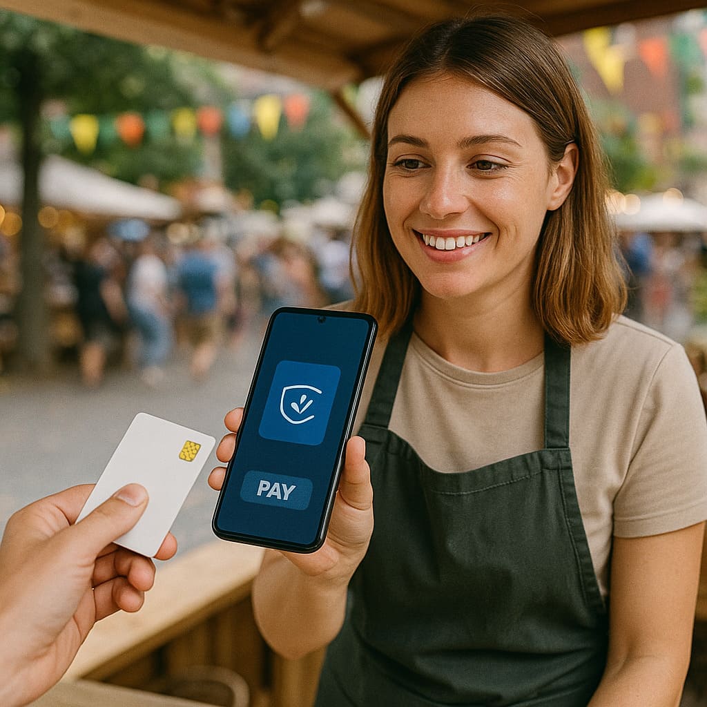 Mobile Verkaufsstände und Dienstleister auf Events können Kartenzahlungen schnell und kontaktlos per Smartphone akzeptieren – ganz ohne klassisches Kassenterminal. Ob Girocard, Debit- oder Kreditkarte: So zahlen deine Gäste bequem, sicher und ohne Wechselgeldstress. Das sorgt für zufriedene Kunden und mehr Umsatz.